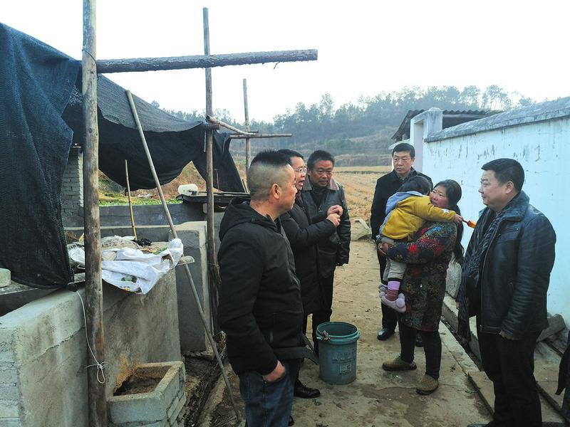 ▲党员干部深入到何店镇王店村开展遍访贫困户并查看香猪养殖情况