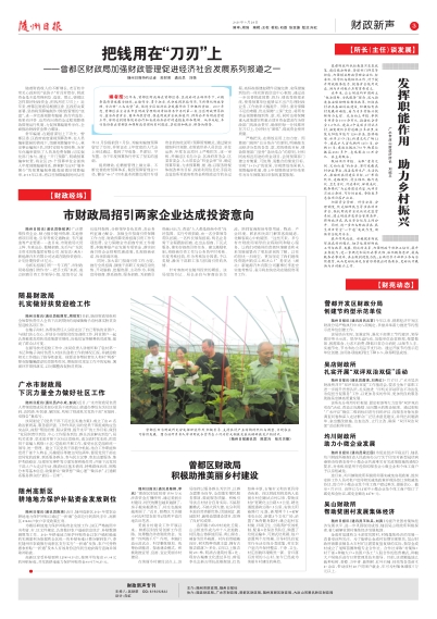 随州日报讯(通讯员徐致爽)广泛联络投资企业,倾力推介随州资源,实地察看项目用地,引导考察交通物流、专汽制造等产业要素……连日来,市财政局大员上阵、专班出击、做精招商,先后与广东民丰资本控股集团有限公司、易安达(湖北)新能源汽车有限公司达成在随投资意向,计划分期投资15亿元。