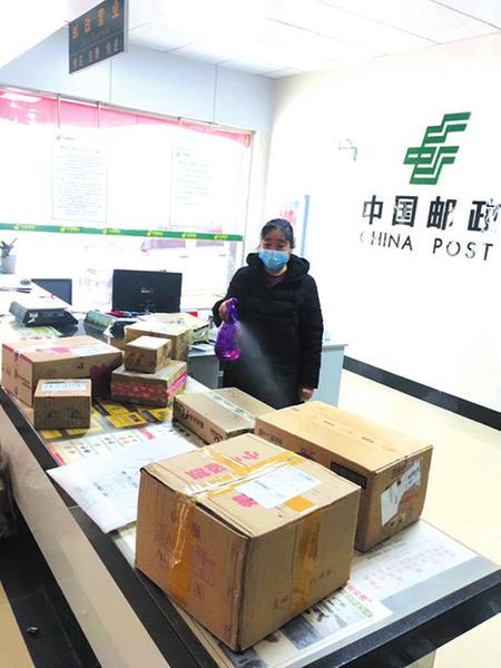 ▲疫情期间,随县高城支局营业员坚持每天为进出口邮件消杀