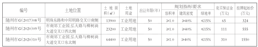 根据相关法律的规定,经随州市人民政府批准,随州市自然资源和规划局决定在随州市自然资源和规划局网上交易系统(http://223.75.160.196:9000)以网上挂牌方式出让3宗国有建设用地使用权。现将有关事宜公告如下: