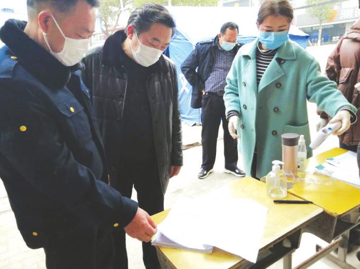 ▲随县交通运输局党组书记、局长胡波,副局长张自炳到西门口临时党支部督查值日党员登记出入情况