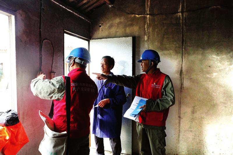 11月3日,国网广水市供电公司蔡河供电所组织党员服务队深入用户家中,讲解安全用电知识,修理故障用电设备,检查潜在隐患问题,保障用户安全可靠用电。图为党员服务队为客户检查用电隐患问题。 (随州日报通讯员程淇、杨雄摄)