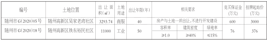 随州市国有建设用地使用权网上挂牌出让公告
