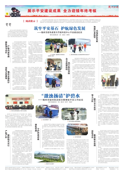 2020年,随州市城市防洪排水管理处切实把创建平安单位工作纳入议事日程,齐抓共管较好地完成了平安建设的各项工作任务,担负起了保一方平安的政治责任,保持了本单位和负责区域的安全稳定,实现了创一流的工作、生活、学习环境,树一流的单位形象的目的,有力推动了精神文明、物质文明、政治文明的协调发展,为谱写新时代高质量发展新篇章,提供坚强思想保障和强大精神力量。