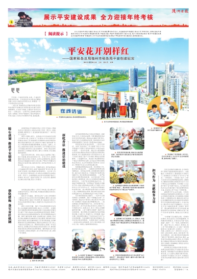 为大力宣传平安随州建设(综治工作)中的典型事例和闪光点,为迎接各级平安建设(综治工作)年终测评,为争创各级平安建设(综治工作)优胜单位营造舆论氛围,市委政法委、市委平安建设领导小组办公室、随州日报社联合推出“展示平安建设成果全力迎接年终考核”专题宣传,今日刊发的是国家税务总局随州市税务局平安创建纪实,敬请读者关注。