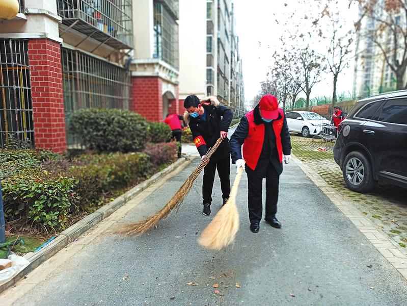 12月26日,随州高新区十里铺社区组织10余名下沉党员干部,会同物业公司一起开展“党旗领航文明共创”志愿服务活动,清理居民小区乱堆乱放、电动车私拉电线充电等现象,清扫垃圾,开展文明小区建设宣传,共同营造好居住环境,迎接元旦春节到来。 (随州日报通讯员李鹏摄)