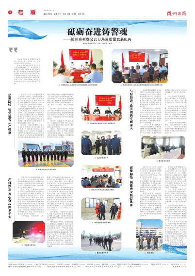 2020年,随州高新区公安分局在市公安局和高新区党工委、管委会正确领导下,积极开拓进取,勇于探索创新,善于攻坚克难,有效防范和化解社会风险,依法严厉打击各类违法犯罪,切实维护公民合法权益,成功走出了一条规范化管理和创新式发展之路,实现了公安工作的新跨越,为促进全区经济社会又好又快发展作出了贡献。