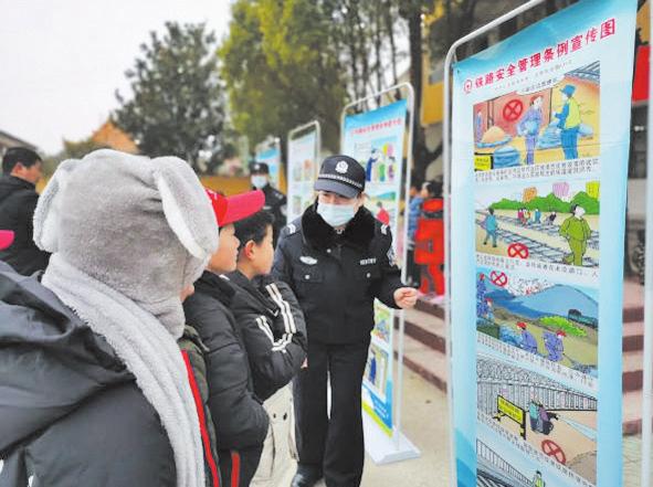 近日,武汉铁路公安处广水车站派出所联合广水车站深入辖内铁路沿线的孝子中心小学、南新小学、杨家河小学,开展“快乐过寒假,安全不放假”铁路安全主题教育宣传活动。(随州日报通讯员黄萍、史惠摄)