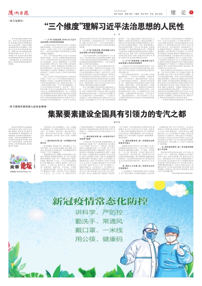 规划是旗帜、规划是方向。要发扬民主、开门问策,集思广益,切实把社会期盼、群众智慧、专家意见、基层经验充分吸收进来,高质量编制《随州专用车“十四五”发展规划》。