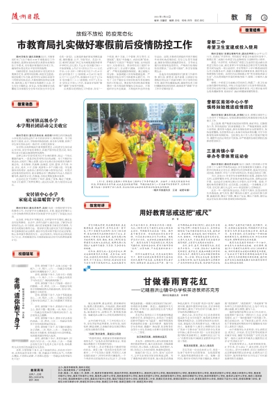 随州日报讯(通讯员桂芹、加珍)为进一步做好留守学生的教育工作,关注留守学生健康成长,日前,随县安居镇中心小学全体教师利用周末对该校留守学生进行了家庭走访活动。