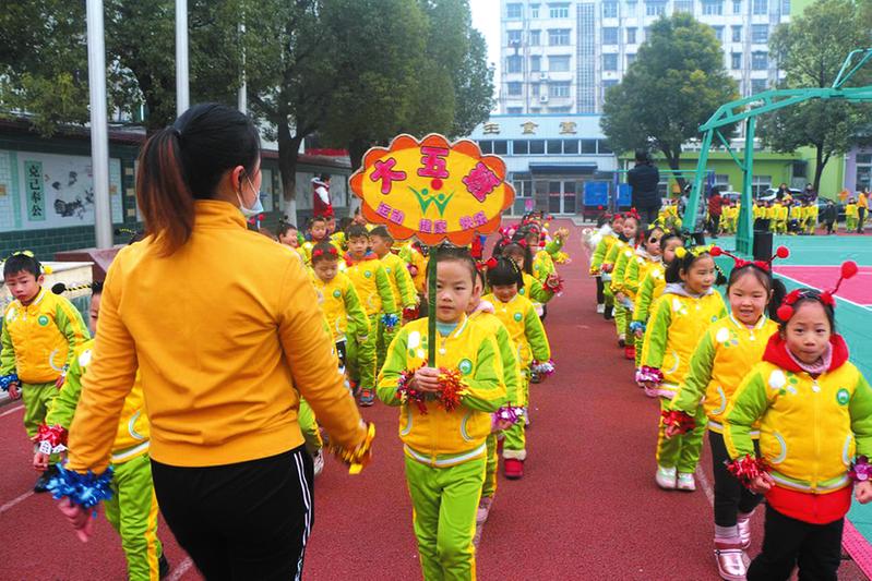 1月5日,曾都区五眼桥小学附属幼儿园举行了冬季早操比赛。活动中,小朋友们排着整齐的队伍,伴随着音乐的节拍,认认真真地做着早操。早操活动是幼儿一日活动中的重要环节,比赛的开展不仅进一步增强了幼儿体质,还让他们树立初步的竞赛意识和集体合作精神。(随州日报通讯员江波赵爱玲摄)
