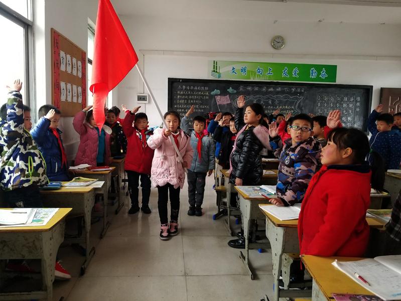 近日,曾都区洛阳小学开展了“学习党的十九届五中全会精神”中队主题队会,让少先队员们感悟党领导人民建设祖国取得的新的伟大成就,激发队员们的爱国热情。 (随州日报通讯员彭晓迪摄)