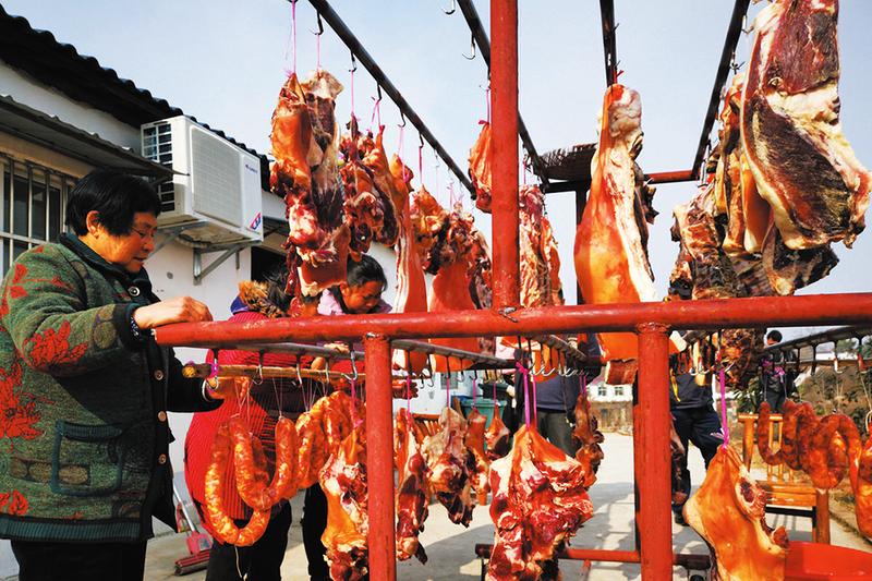 备年货,必不可少的一项就是晒腊味。每年腊月晴好的日子,农家的院子里、屋檐下,四处都是它们的身影。这些经过阳光“爱抚”、寒风“洗礼”的腊味,散发出阵阵诱人的腊香,这便是最早的年味。