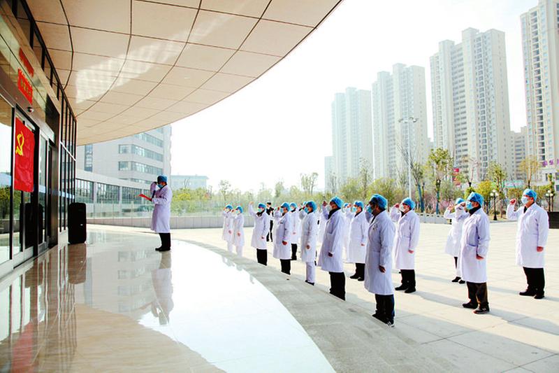 新冠肺炎防控战役打响以来,医院党委闻令而动,靠前指挥,坚持把党旗插在疫情防控最前沿,第一时间组建党员抗疫先锋队,400多名党员干部和1104名医护人员逆行奋战在抗疫一线,坚决守护全市人民的生命安全和身体健康。通过集中力量攻坚,48小时内将原有1个隔离病区增加到18个病区,收治病床由100张扩充到1068张,留观隔离单人间由9间增加到217间,实现了“应收尽收,应治尽治,应检尽检,应隔尽隔”。规范特殊人群中发热、疑似及确诊病例的分诊收治流程,独立设置终末期肾病、恶性肿瘤、精神疾病和孕产妇四类隔离病区,有效避免了疫情扩散蔓延,收治的559名特殊疾病患者未发生一例院内感染;牵头成立随州市防控医疗专家组,深入各县市区指导新冠肺炎医疗救治、诊疗培训和科普教育,制定了《新冠肺炎防控指南》和《居家隔离观察指南》等全市疫情防控指导性文件,增强了广大人民群众战胜疫情的信心。通过开展中西医结合、输注康复者血浆等新疗法,一人一策,辨证施治,取得显著成效,治愈率达96.56%,高于全省93.38%的平均水平;病亡率3.44%,显著低于全省6.62%的平均水平。