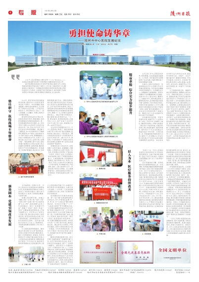 2020年,面对突如其来的新冠肺炎疫情,随州市中心医院党委带领全院干部职工,与时间赛跑,同病毒较量,冲锋在战疫最前沿,充分展现了该院作为全市唯一三甲综合医院的实力、责任和担当,交出了一份人民满意、万众瞩目、可载入医院百年史册的答卷。