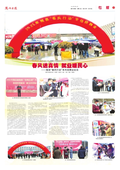 随县将“春风行动”作为做好农村劳动力转移就业和农民工就业创业工作的重要抓手,统筹各方资源,重点服务有就业创业意愿的农村劳动力、退捕渔民和有用工需求的用人单位,积极促进人岗对接,努力满足企业用工和劳动者就业创业需求。