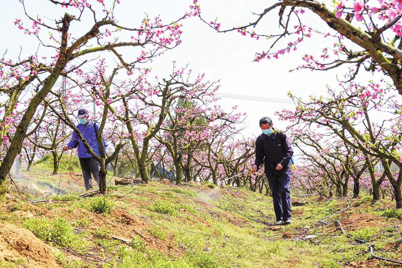 随着气温逐渐回升,随县果农抢抓时节入园开展果树修剪、追肥、除草等各项工作,为今年丰产增收打基础。图为新街镇联合村果农正在油桃园里喷洒农药除草。 (随州日报全媒记者李文军摄)