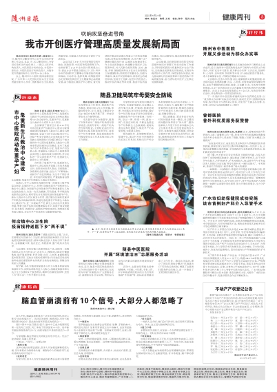 随州日报讯(通讯员魏建)为强化母婴安全工作责任,规范助产技术服务,提高妇幼卫生工作质量,保障母婴安全,近日,随县卫健局对全县20家医疗机构开展了第一季度母婴安全工作督导检查。