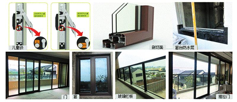 例如:“绿城•玉园”选用高品质的“奋安型材”“奇龙系统窗”;长度7.4米的玻璃栏板,使用14*80的镀锌钢板做立柱和扶手,6+1.14PVB+6的加胶安全玻璃;阳台推拉门使用80系列型材,抗风荷载是随州极端天气的2.5倍。装甲特种钢板4mm厚智能防盗门,防钻、防烟尘,耐火阻燃隔热耐火,三框式拼接主辅框,搭配密码、指纹、刷卡、机械钥匙智能门锁。