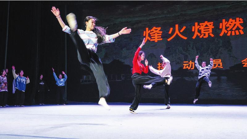 为庆祝中国共产党成立100周年,随州花鼓艺术剧院新编随州花鼓戏《烽火燎燃》日前正在紧张排练。该戏以原中共随县县委书记兼中国工农红军第九军第二总队党代表李彩奇烈士为原型,反映了他光辉战斗的一生。(随州日报全媒记者孙洪涛摄)