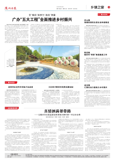 随州日报讯(特约记者吴财荣、通讯员谭静宁、刘思齐)近年来,广水市广水街道办事处在实施乡村振兴工作中,大力实施“红色头雁”“改造提升”“一村一品”“三乡工程”“接力工程”等五大工程,推动“输血”脱贫向“造血”致富转变,全面推进乡村振兴。