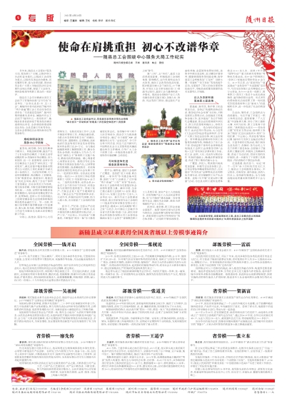 重劳动,树劳模,争先创优精神不断深入。积极选树劳模,推选产生了2名全国劳动模范、7名湖北省劳动模范和18名随州市劳动模范,县人民医院、县一中、县国税局、县审计局先后被省总工会授予“湖北省五一劳动奖状”,湖北金银丰粮食储备有限责任公司农民工徐化喜被评为湖北省十佳农民工。主动宣传劳模,大力宣传劳模精神、劳动精神、工匠精神,引领“尊重劳动、尊重知识、尊重创造”的社会风尚,激发了全县干部职工爱岗敬业、创先争优的工作热情。竭力服务劳模,不断完善劳模管理服务机制,一方面,定期开展劳模普查和劳模慰问,每年组织劳模免费疗休养、免费体检,连续10年为省部级以上困难劳模争取生活困难和特殊困难补助资金逾百万元。另一方面,积极引导劳模开展劳模创新工作室建设,秦大海、张光能、贺新富劳模创新工作室先后被命名为湖北省劳模创新工作室。
