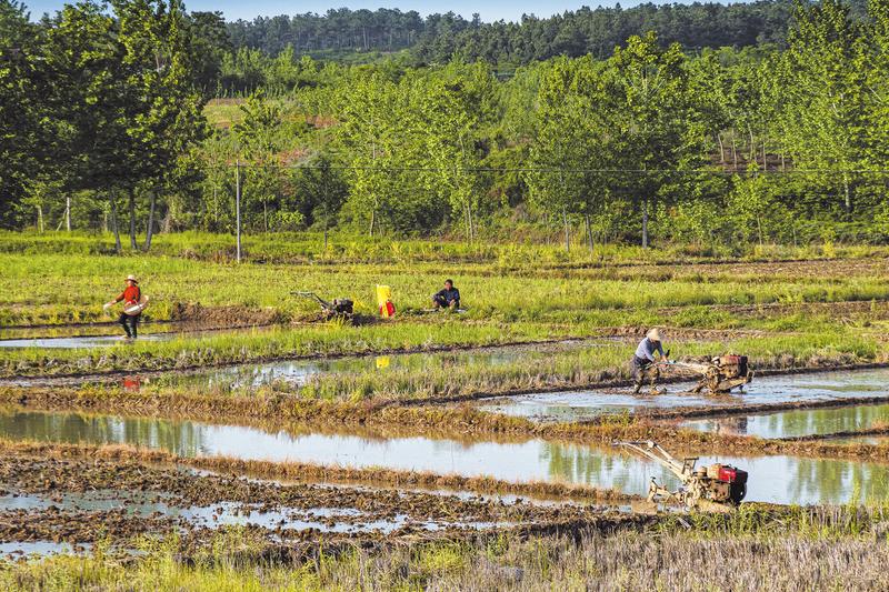 连日来,全市各地农户加紧进行整田、施底肥工作,为插秧做好准备。田间地头,随处可见农户翻地、灌水和育秧忙碌的身影。图为随县安居镇王家楼村农民正在整田。 (随州日报全媒记者李文军摄)