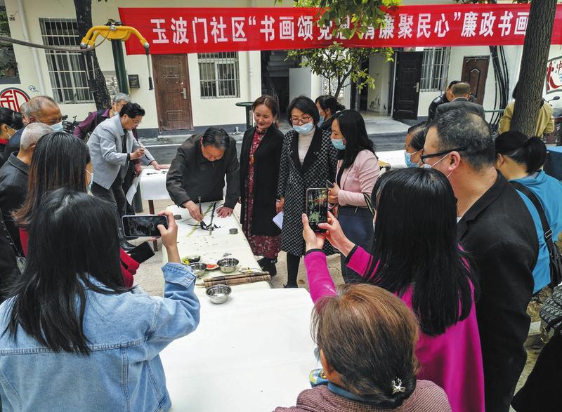 曾都区西城办事处玉波门社区日前开展“书画颂党恩、清廉聚民心”主题活动,丰富居民文化生活。(随州日报全媒记者孙洪涛摄)