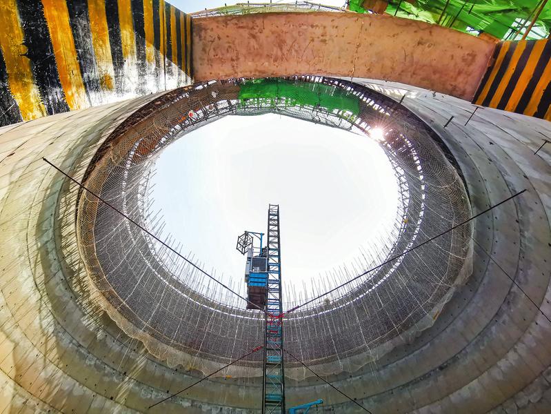 位于随州高新区淅河镇樊家冲的随州火电项目,从5月1日正式开工建设以来,国能长源随州发电有限公司组织技术人员和工人加班加点施工。该项目静态投资48.73亿元,动态总投资49.98亿元,计划2023年2月全部建成投产,建成后可实现年发电量60亿千瓦时。图为正在建设中的一号巨型燃煤塔。 (随州日报全媒记者李文军摄)