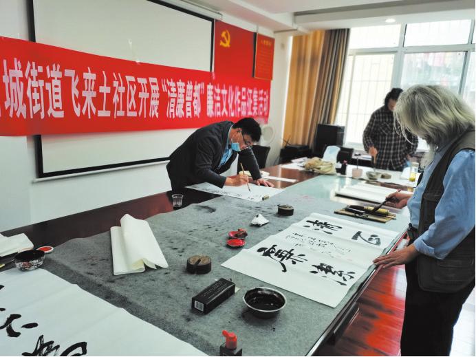 近日,曾都区西城办事处飞来土社区发动党员和居民参与党风廉政文化作品征集活动,营造浓厚的廉政文化氛围,得到社区群众的积极响应,共收到12份书法、绘画等廉政文化作品。(随州日报通讯员张蕾、郑晓琴摄)