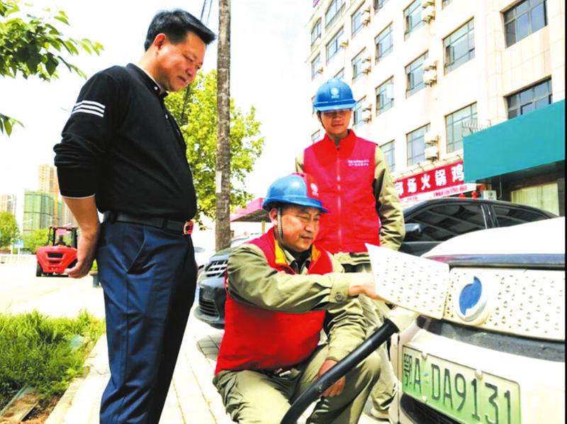 为确保广大的电动汽车用户充电无忧,曾都区供电公司擂鼓墩供电所党员服务队在辖区的充电服务点实行“站岗”制,为广大充电客户提供优质方便快捷的贴心服务,及时解答充电难题,确保广大充电客户绿色出行一路畅通。(随州日报通讯员何厚锦陈秋菊摄)
