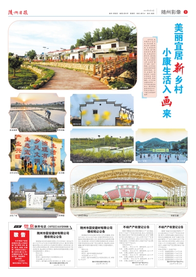 近年来,我市聚焦产业兴旺、生态宜居、乡风文明、治理有效、生活富裕的总要求,着力改善农村人居环境,打造美丽宜居乡村,推进饮水安全、垃圾分类、污水处理等工作,让乡村“面子”光鲜、“里子”精致,让百姓在美丽家园中获得更多幸福感。如今,在随州广袤的农村,无论是乡村农家,还是滩涂田野,到处都是一片片生机涌动的景象;一个个秀美整洁的村庄,都在释放着崭新的活力,奏响乡村振兴、小康生活的动听旋律。