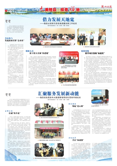 发展靠项目支撑,而项目从何而来?靠的是招商引资。历年来,随县县委、县政府始终把招商引资作为“一号工程”,常抓不懈,全民参与,集聚了招商引资的强大合力。