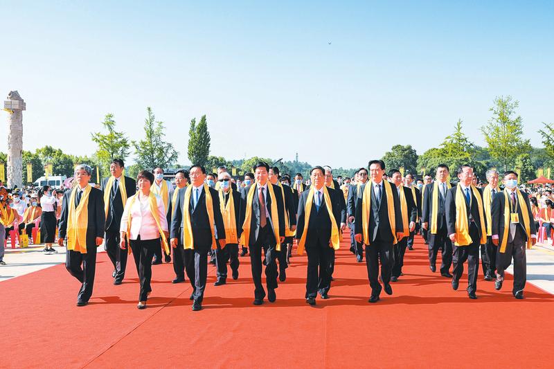 省委书记、省人大常委会主任应勇,省委副书记、省长王忠林,省政协主席黄楚平,海峡两岸关系协会副会长周宁,中国文联党组成员徐永军,中国侨联党组成员、副主席程学源,中华炎黄文化研究会副会长顾伯平、任大援,省人大常委会党组书记、常务副主任王玲,省委常委、常务副省长李乐成,副省长张文兵,国家能源投资集团有限公司董事长王祥喜,新兴际华集团有限公司总经理贾世瑞,中国恒天集团有限公司党委副书记李晓红,北新集团建材股份有限公司董事长王兵,“人民英雄”称号获得者张定宇,全国脱贫攻坚楷模白晶莹,全国优秀共产党员吴天祥,中国工程院院士范维澄,全国脱贫攻坚先进个人卢琳,市委书记钱远坤,市长克克等出席大典。
