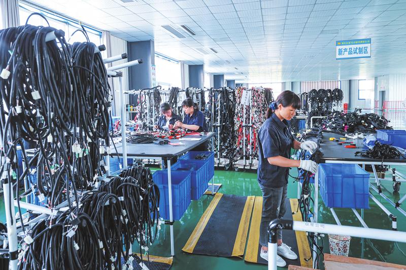 “十四五”开局之年,湖北齐星集团的齐星机械、晶星光伏、耀星国贸、齐星新能源同时发力,全年计划销售收入突破80亿元,一季度完成销售收入21亿元,创利税1.74亿元。图为该公司的线束新产品试制区。(随州日报全媒记者李文军摄)