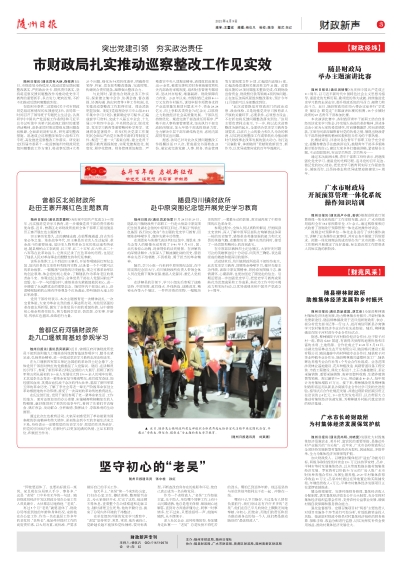 随州日报讯(通讯员包大炳、徐致爽)近日,市财政局为持续深入推动巡察反馈问题整改落实,严把政治关卡、狠抓责任落实,坚持将巡察反馈问题整改作为推动党史学习教育的重要抓手,多点发力、靶向治理,不折不扣推动反馈问题整改到位。