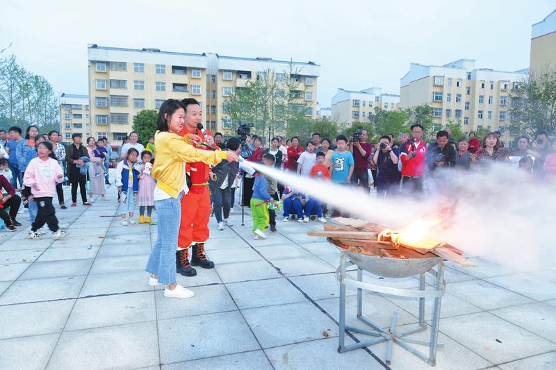 随州高新区淅河镇日前开展消防安全进社区活动,组织社区居民学习消防知识,进行消防演练,让居民熟练使用消防器材。图为居民进行灭火演练。(随州日报全媒记者孙洪涛、通讯员王涛摄)
