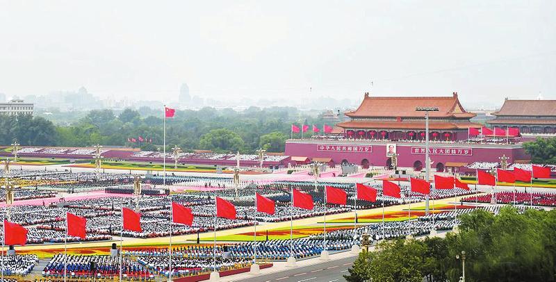 神州大地欣欣向荣、气象万千,首都北京花团锦簇、旌旗飘扬。在伟大的中国共产党领导下,近代以后久经磨难的中华民族迎来了从站起来、富起来到强起来的伟大飞跃,14亿多中国人民正意气风发走在中国特色社会主义新时代的壮丽征程上。