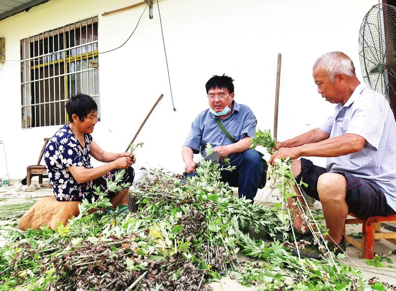 工行随州分行驻曾都区万店镇粉铺村工作队组织脱贫户开展捉蜈蚣、捡野生菌、割野生艾蒿、采中草药等,户均增收5000元以上。图为近日工作队员与脱贫户一起采收野生艾蒿。(随州日报通讯员龚萱摄)