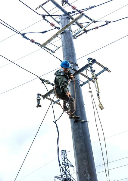 8月13日,随县洪山镇寺山居委会小河沟桥附近,电力部门正在对故障电路进行维修,以尽快恢复供电,保障群众生活和生产。