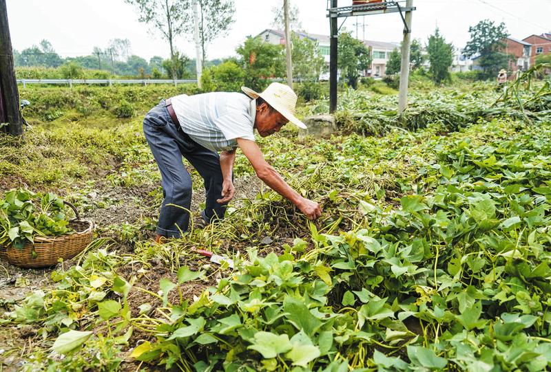 不等不靠,抗灾自救。8月15日,曾都区洛阳镇金鸡岭村村民正在清理被大水冲过的农田,以减少洪灾损失。 (随州日报全媒记者孙洪涛摄)