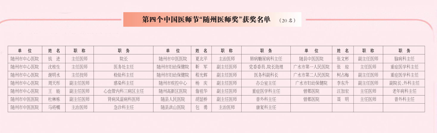第四个中国医师节“随州医师奖”获奖名单(20名)