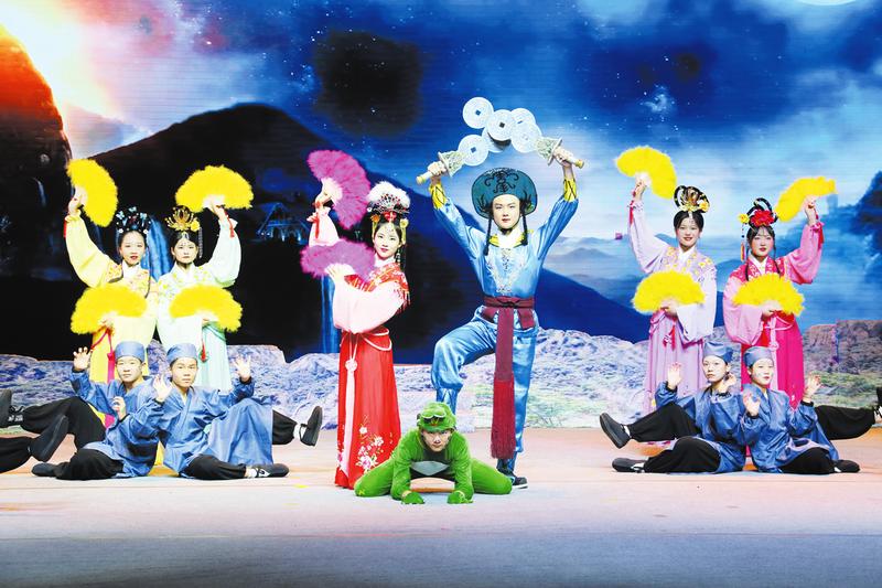 随州花鼓艺术剧院新编排的随州花鼓戏《刘海砍樵》,日前已完成最后的彩排,近期将与观众见面。据介绍,这部新戏全部由我市青年演员担纲。图为彩排现场。 (随州日报全媒记者孙洪涛摄)