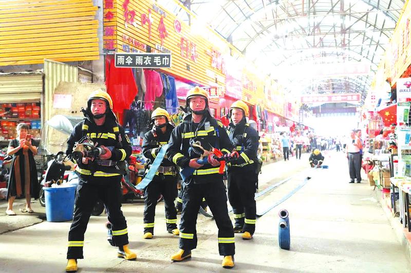 近日,曾都区东城街道联合区消防救援大队在鹿鹤市场开展消防应急演练暨消防知识培训。 (随州日报通讯员冬臣摄)