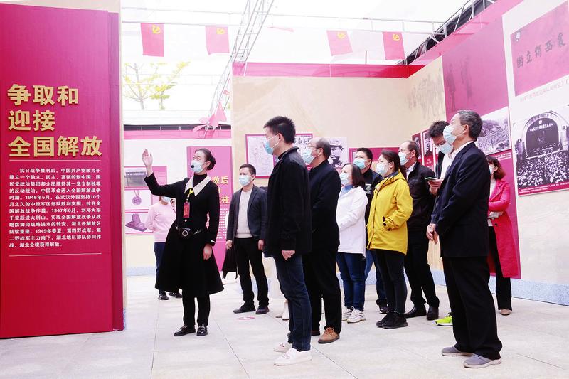近期,“荆楚大地红旗飘暨湖北革命文物图片走进随县巡展”举行,前来参观巡展的党员干部和群众络绎不绝。图为随县审计局机关党员干部观看展览听讲解,砥砺干事创业的初心使命。