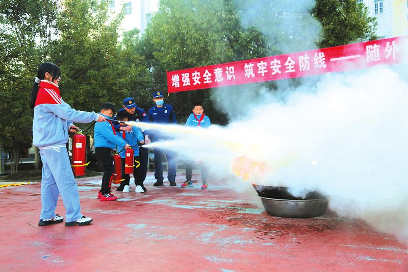 在“119全国消防安全日”到来之际,为使全校师生了解消防知识,增强自我保护意识,北郊消防大队联合随州市外国语学校汉孟路校区的全体师生开展消防演练活动。 (随州日报通讯员储韵文吕晨摄)