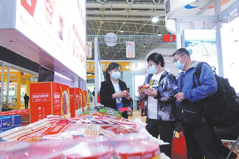 游客在展馆选购香菇等产品。 (随州日报全媒记者李文军摄)