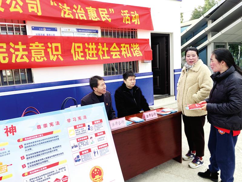 今年12月4日是第八个国家宪法日。为了进一步弘扬宪法精神、树立宪法权威、增强宪法意识,12月1日上午,市国投公司组织人员下沉到随州高新区吴家老湾社区,开展“法治惠民”活动。现场通过设置宣传展板,向社区居民发放宪法知识宣传手册和《中华人民共和国民法典》等宣传资料,引导居民自觉学法、合理用法、积极守法。市国投公司还安排两名顾问律师,免费为居民提供法律咨询服务。 (随州日报全媒记者张清、通讯员甘清秀摄)