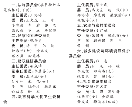 随州市第五届人民代表大会各专门委员会组成人员名单