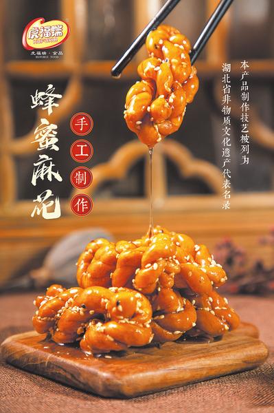 随州市虎福瑞食品加工厂主营蜂蜜麻花、馓子系列产品为代表的传统糕点。其麻花制作工艺由傅氏始创于清乾隆年间,历经七代家族传承不断,距今已有200余年历史,2020年1月被纳入湖北省第六批非物质文化遗产代表名录,是当地百姓喜爱的一款传统糕点。